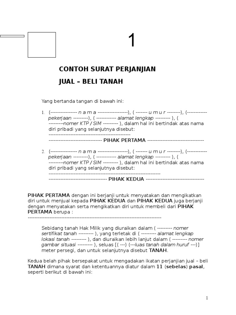 Contoh surat perjanjian jual beli tanah pdf doc lamudi.